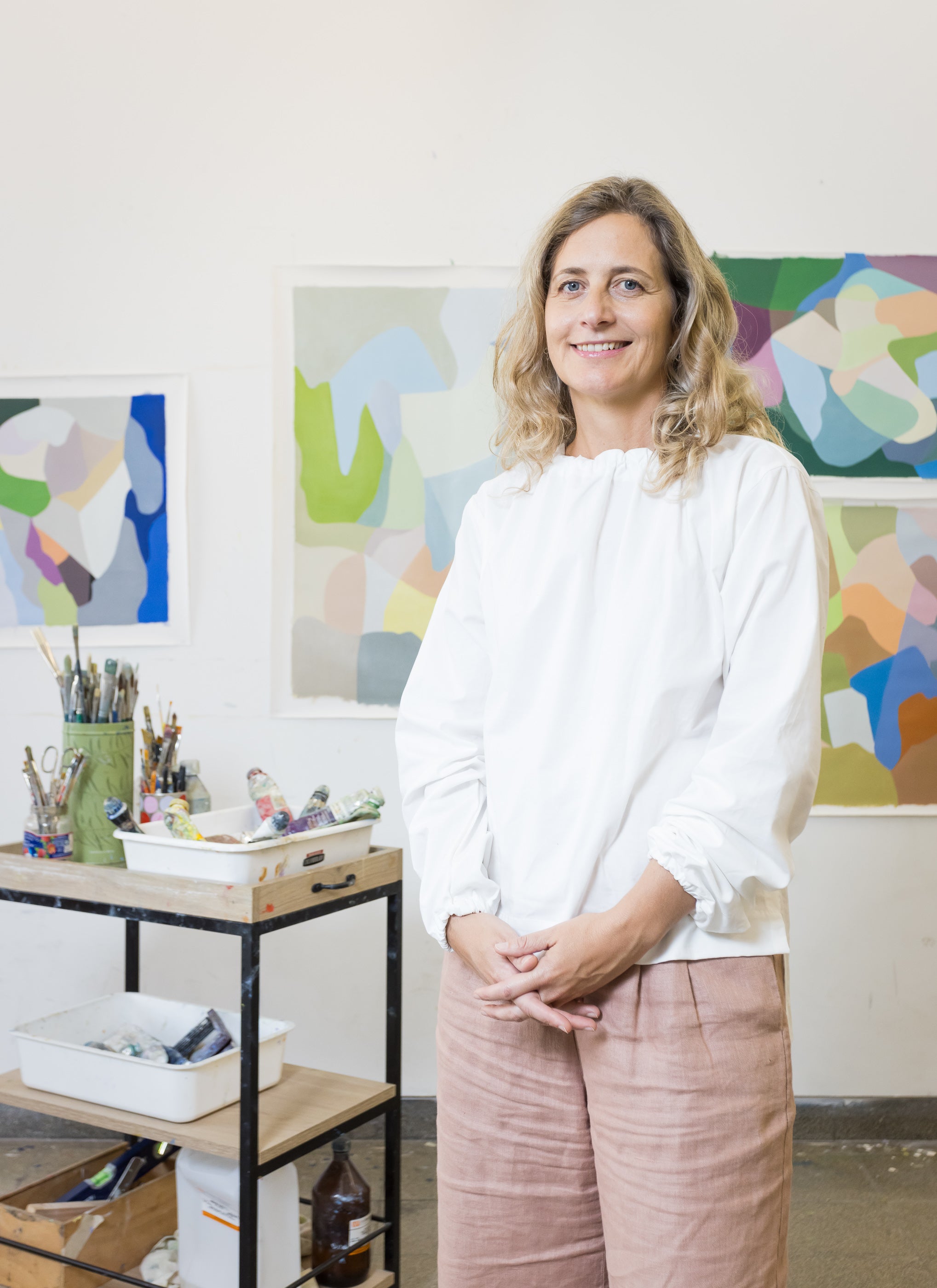 Florencia Trucco is an abstract painter based in Buenos Aires, Argentina. Her practice centers on color as both subject and medium, exploring how chromatic relationships evoke emotion and silence. Drawing from Bauhaus color theory and her own travels collecting visual references, she creates compositions where forms emerge intuitively and seem to interlock naturally.
